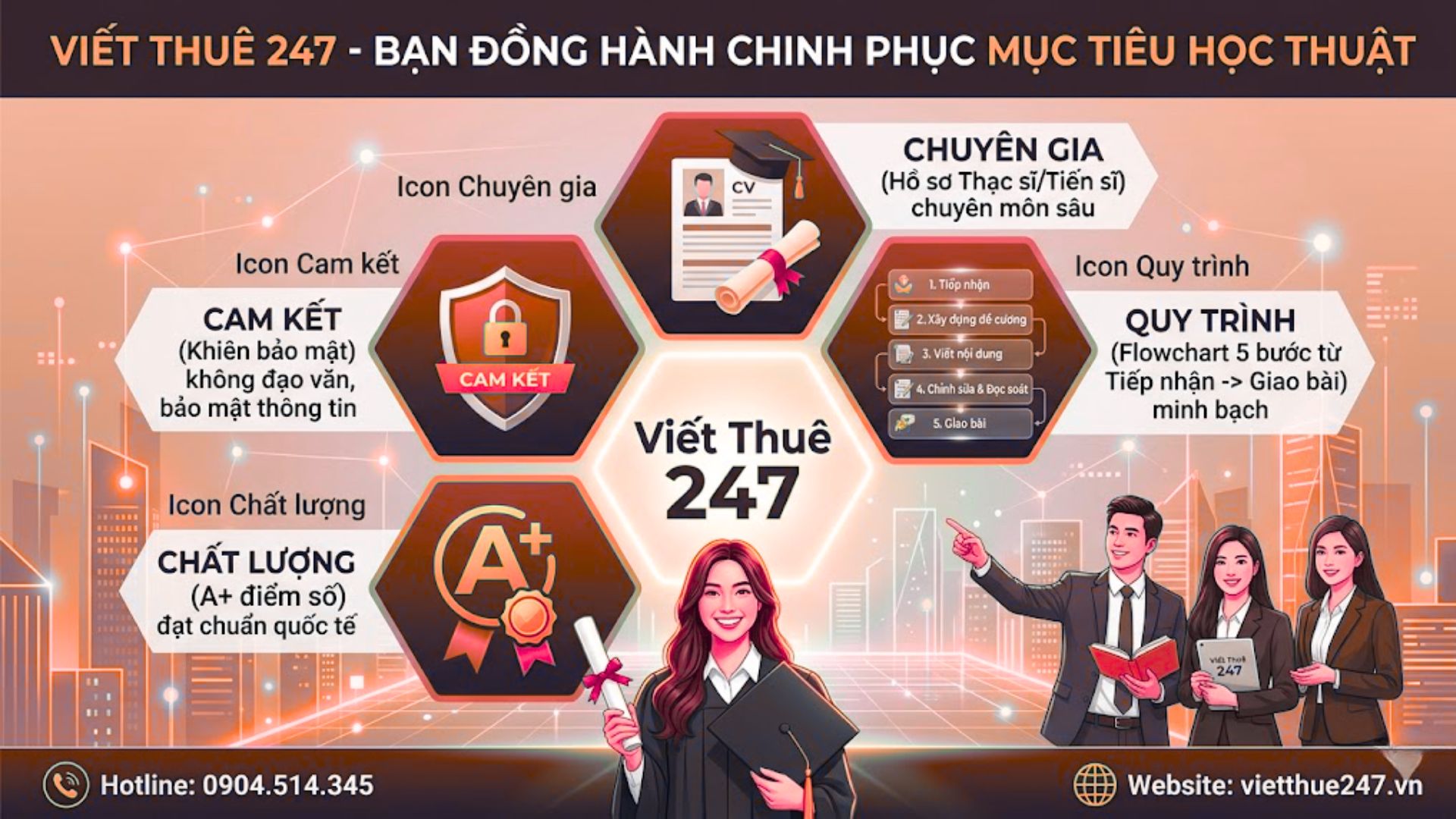 Viết Thuê 247 tự hào là đối tác tin cậy, giúp sinh viên chinh phục mọi mục tiêu học thuật với chi phí tối ưu. Hãy để chúng tôi giúp bạn hoàn thiện bài luận văn một cách chỉn chu, chuyên nghiệp và đầy tự tin.
