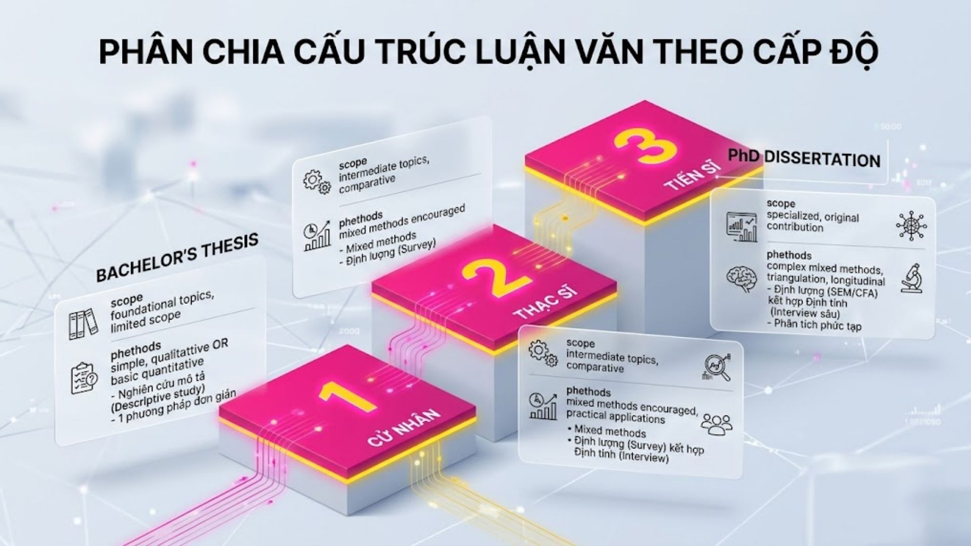 Mức độ phức tạp của đề tài cần phù hợp với cấp độ học vị. Dưới đây là hướng dẫn cụ thể.