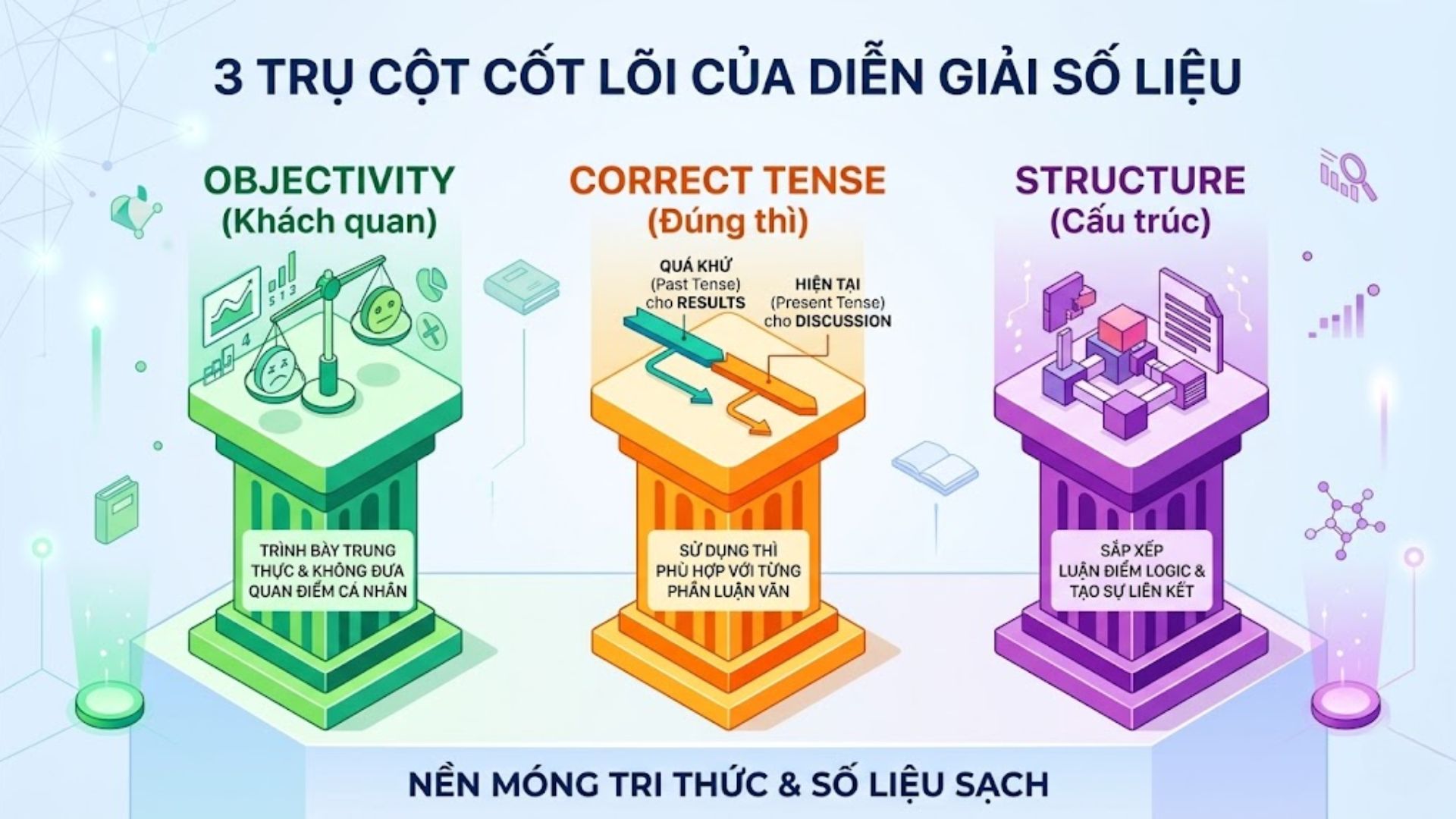 Sử dụng neutral academic tone: Tập trung vào dữ liệu và bằng chứng thay vì cảm xúc hay quan điểm cá nhân.