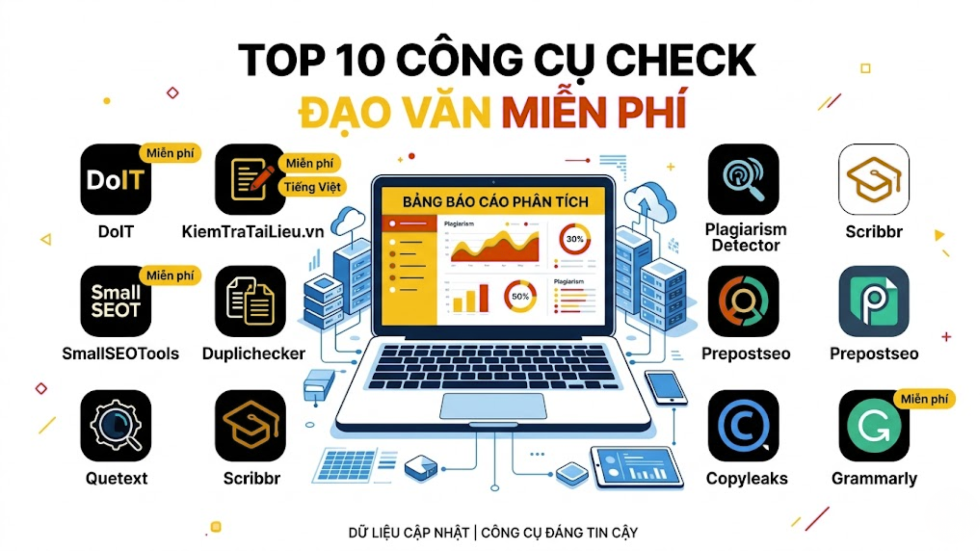 Tổng hợp 10 công cụ kiểm tra đạo văn miễn phí được hơn 50.000 sinh viên Việt Nam tin dùng — kèm ưu nhược điểm chi tiết từng phần mềm.