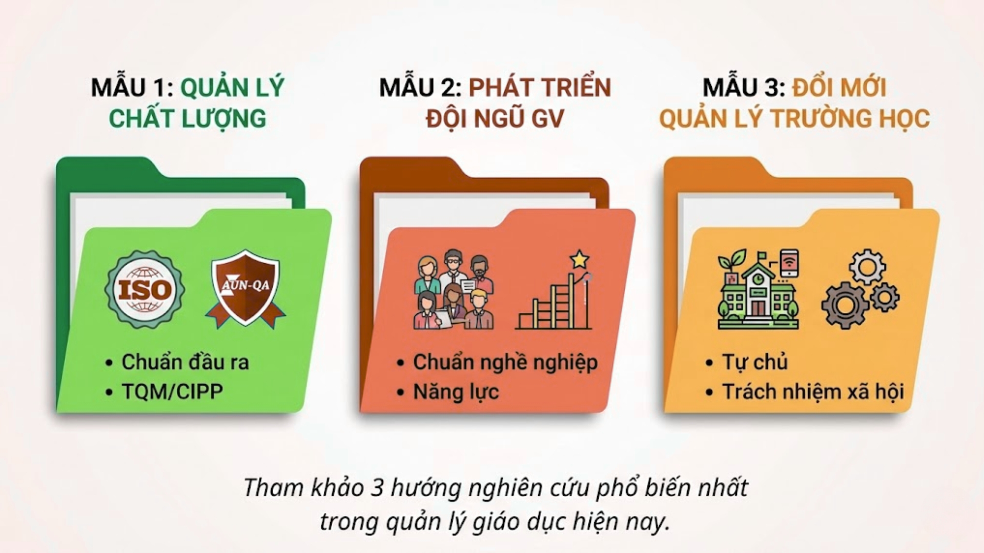 Dưới đây là 3 khung đề cương chi tiết cho các hướng nghiên cứu phổ biến nhất trong ngành quản lý giáo dục hiện nay.