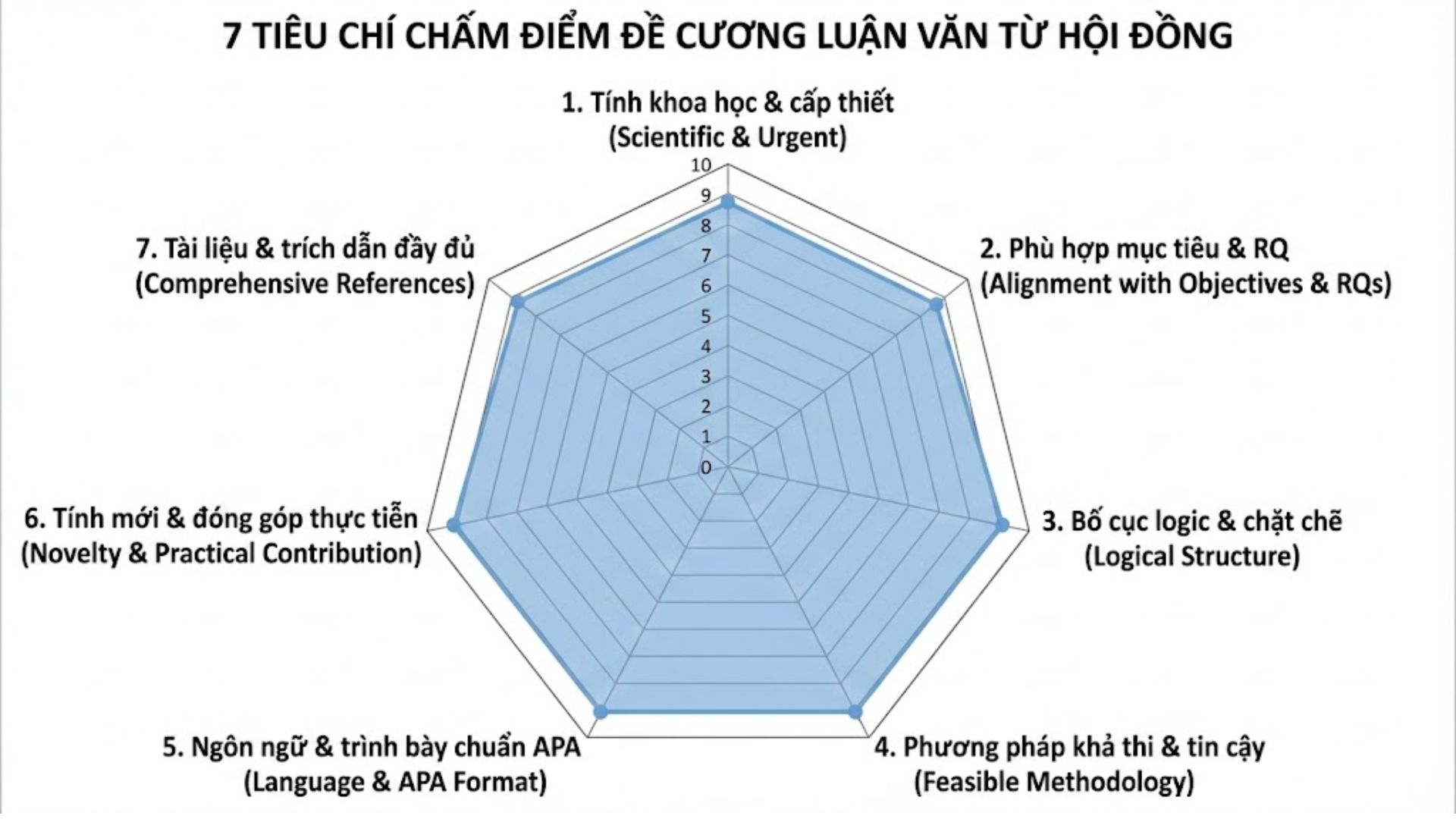 6. 7 tiêu chí chấm điểm đề cương luận văn Tiếng Anh từ hội đồng