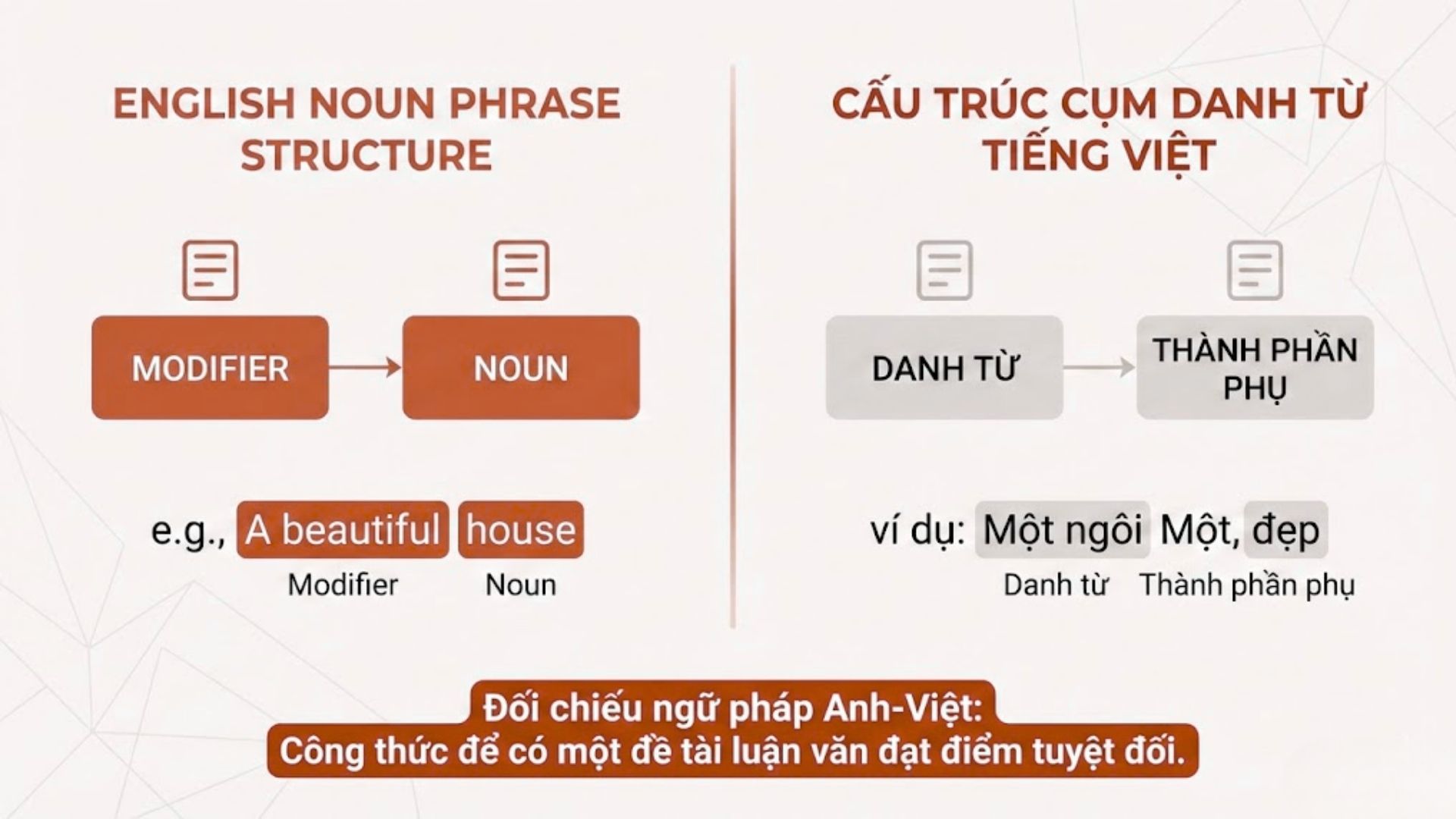 Bảng liệt kê 50 đề tài ngữ pháp giúp bạn chọn hướng nghiên cứu đối chiếu nhanh và hiệu quả.