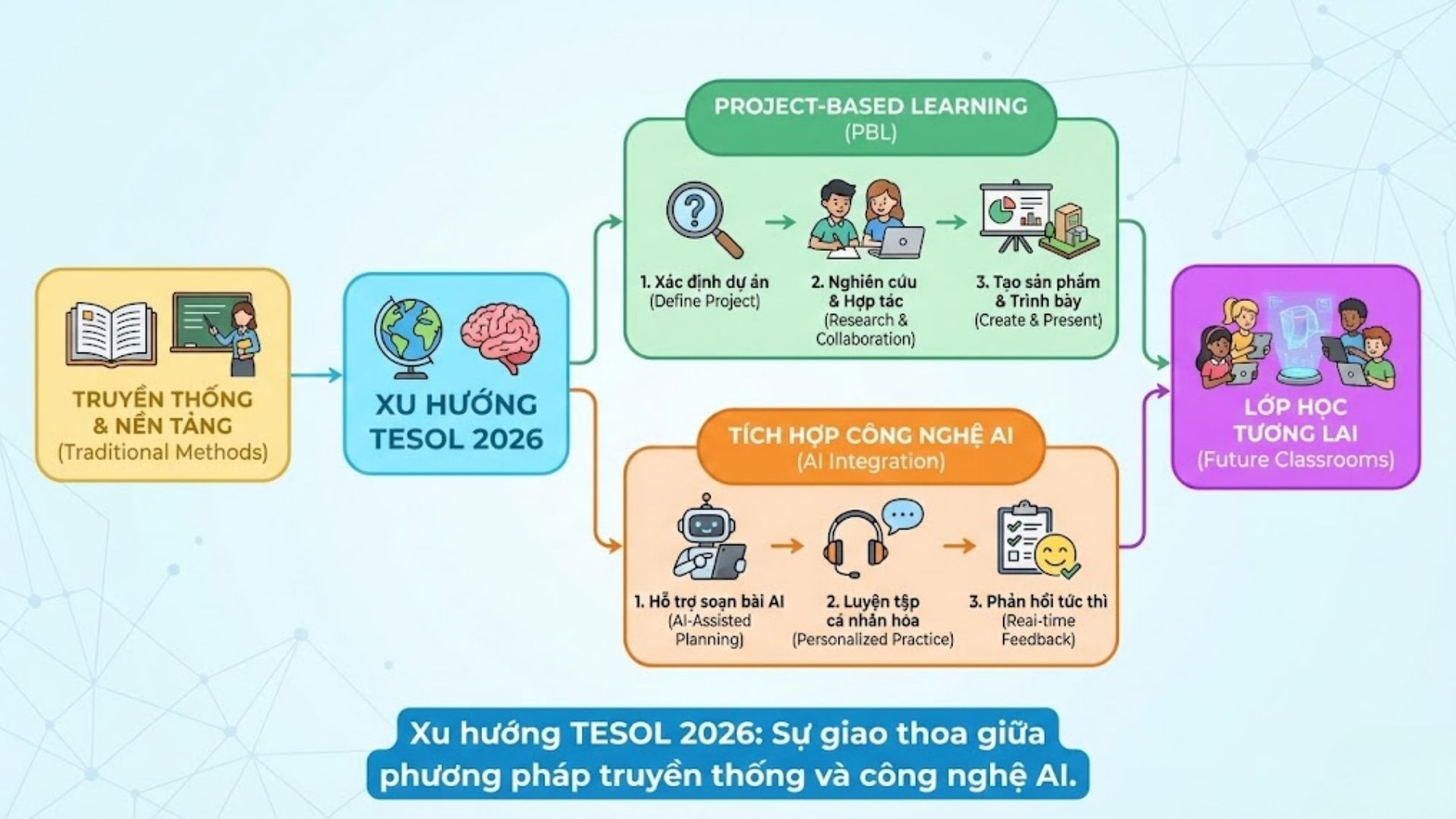 Bảng tổng hợp các đề tài TESOL giúp sinh viên sư phạm định hướng phương pháp giảng dạy hiện đại nhất.