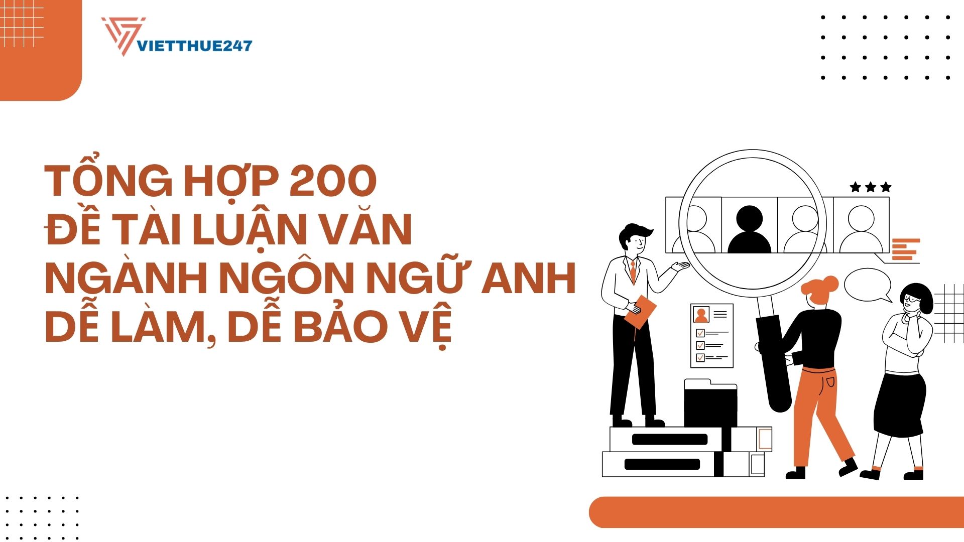 Lựa chọn đề tài luận văn ngành Ngôn ngữ Anh quyết định 70% thành công của sinh viên năm cuối. Đề tài quá sức khiến bạn mất thời gian nghiên cứu nhưng kết quả không khả quan. Một hướng đi vừa sức giúp tiết kiệm công sức mà vẫn ghi điểm tuyệt đối với hội đồng. Viết Thuê 247 thấu hiểu áp lực tốt nghiệp nên đã tổng hợp kho tài liệu này để hỗ trợ bạn.