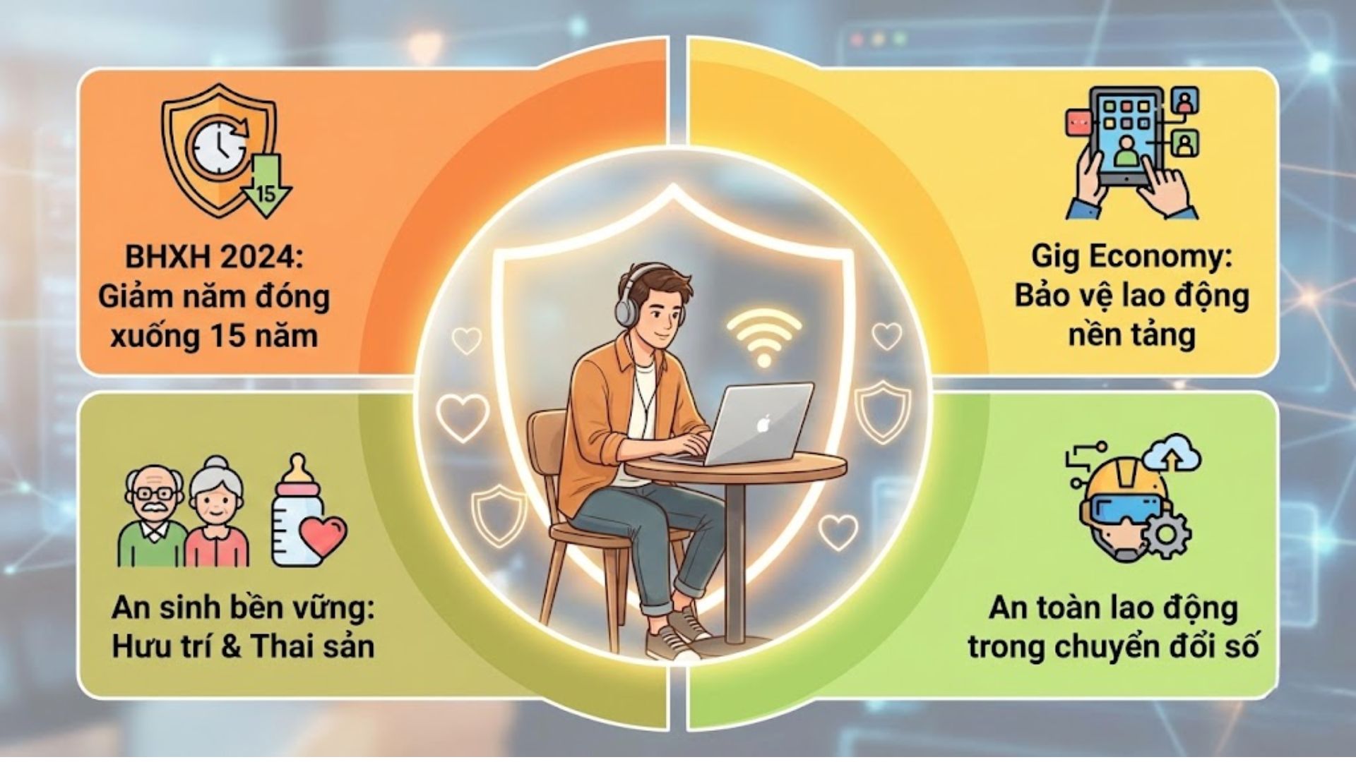 Sự thay đổi của Luật Bảo hiểm xã hội 2024 và Bộ luật Lao động 2019 mở ra nhiều hướng nghiên cứu mới về an sinh xã hội cho người lao động.