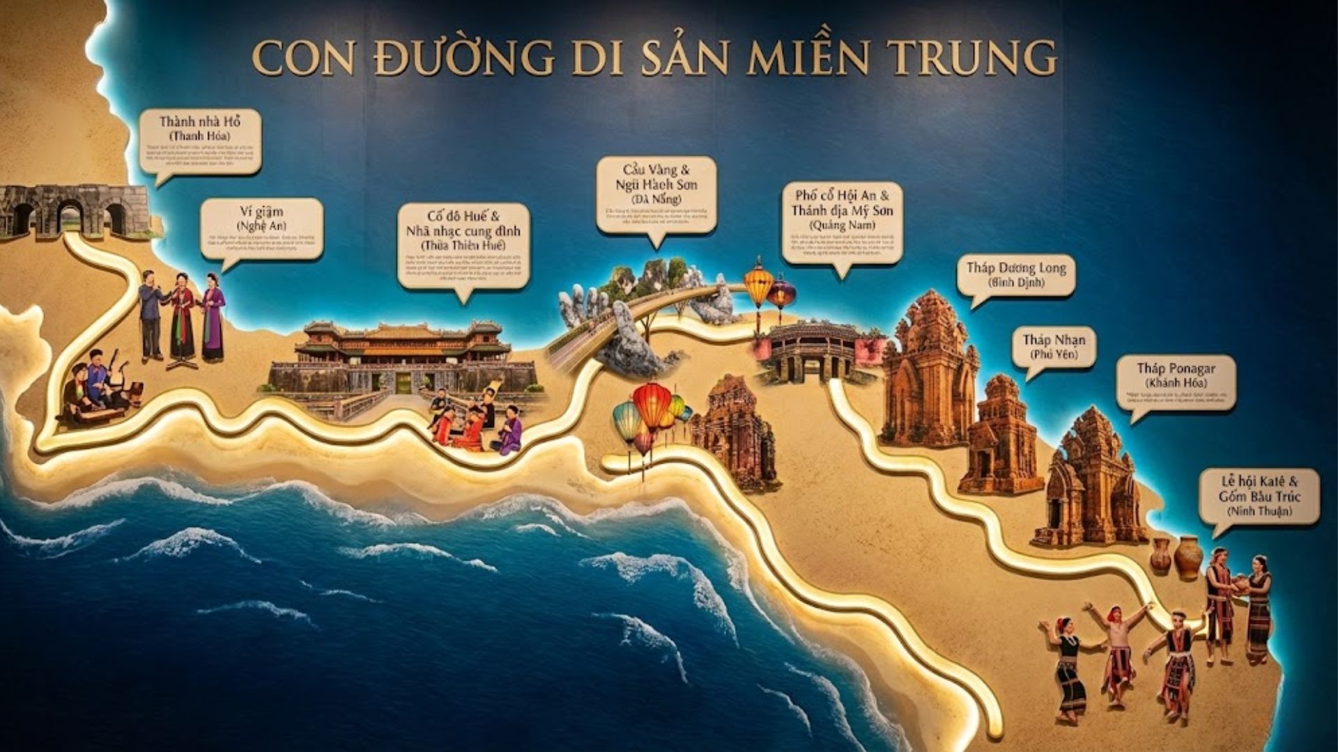 Miền Trung là vùng đất của những di sản thế giới và văn hóa biển đảo đặc sắc. 50 đề tài dưới đây giúp học viên khai thác tối đa lợi thế của “Con đường di sản miền Trung”.