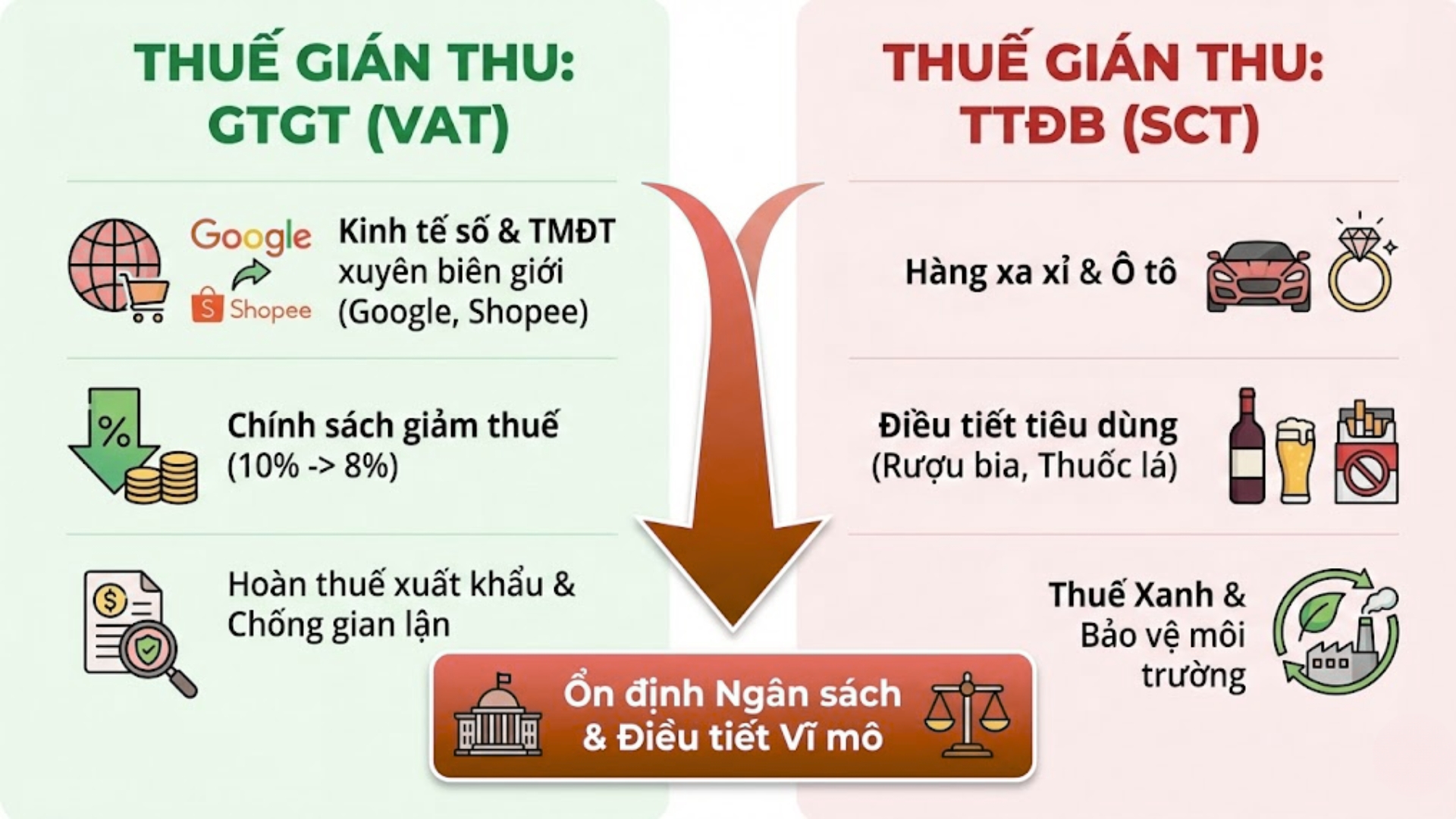 9. Tác động của thuế gián thu (GTGT và TTĐB) đến giá cả hàng hóa và lạm phát tại Việt Nam giai đoạn 2023-2025.