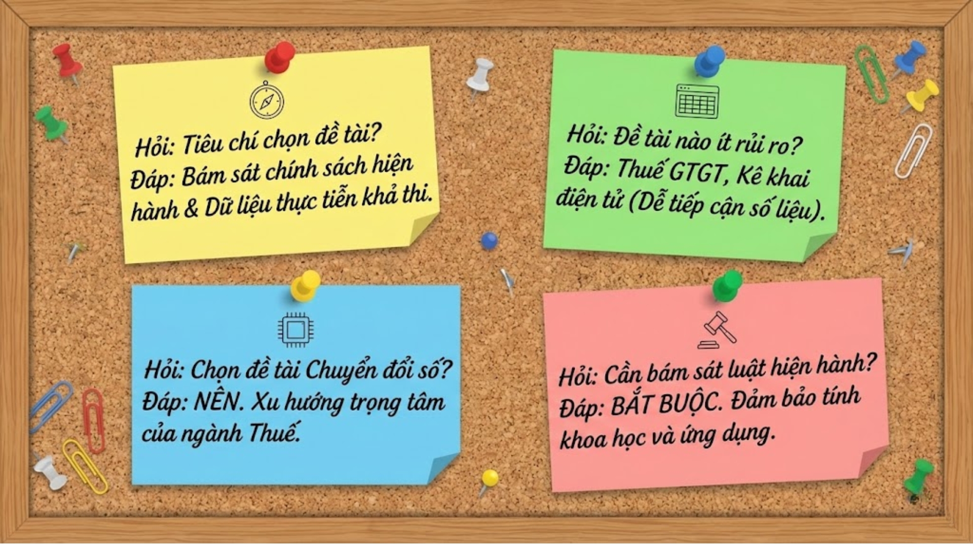 Nên ưu tiên đề tài bám sát chính sách thuế hiện hành và có dữ liệu thực tiễn đầy đủ. Lựa chọn hướng đi phù hợp với định hướng nghề nghiệp và khả năng nghiên cứu của bản thân là cần thiết.