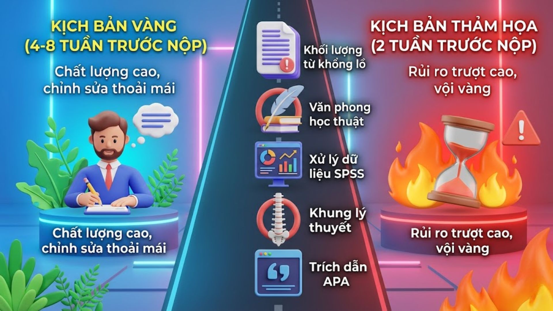 Thời gian “vàng” để bắt đầu tìm kiếm hỗ trợ là từ 4 đến 8 tuần trước hạn nộp. Khoảng cách này cho phép chuyên gia thực hiện nghiên cứu sâu và chỉnh sửa theo yêu cầu giáo viên. Một bài luận cử nhân thường dài 5,000 từ, trong khi luận văn thạc sĩ lên đến 15,000 từ (tương đương 30-40 trang). Khối lượng này đòi hỏi sự tập trung cao độ và kỹ năng quản lý thời gian cực tốt. Việc thu thập dữ liệu sơ cấp thường có “độ trễ” lớn, gây áp lực khủng khiếp nếu bắt đầu quá muộn. Nếu chỉ còn 2 tuần, rủi ro không kịp tiến độ là rất cao.