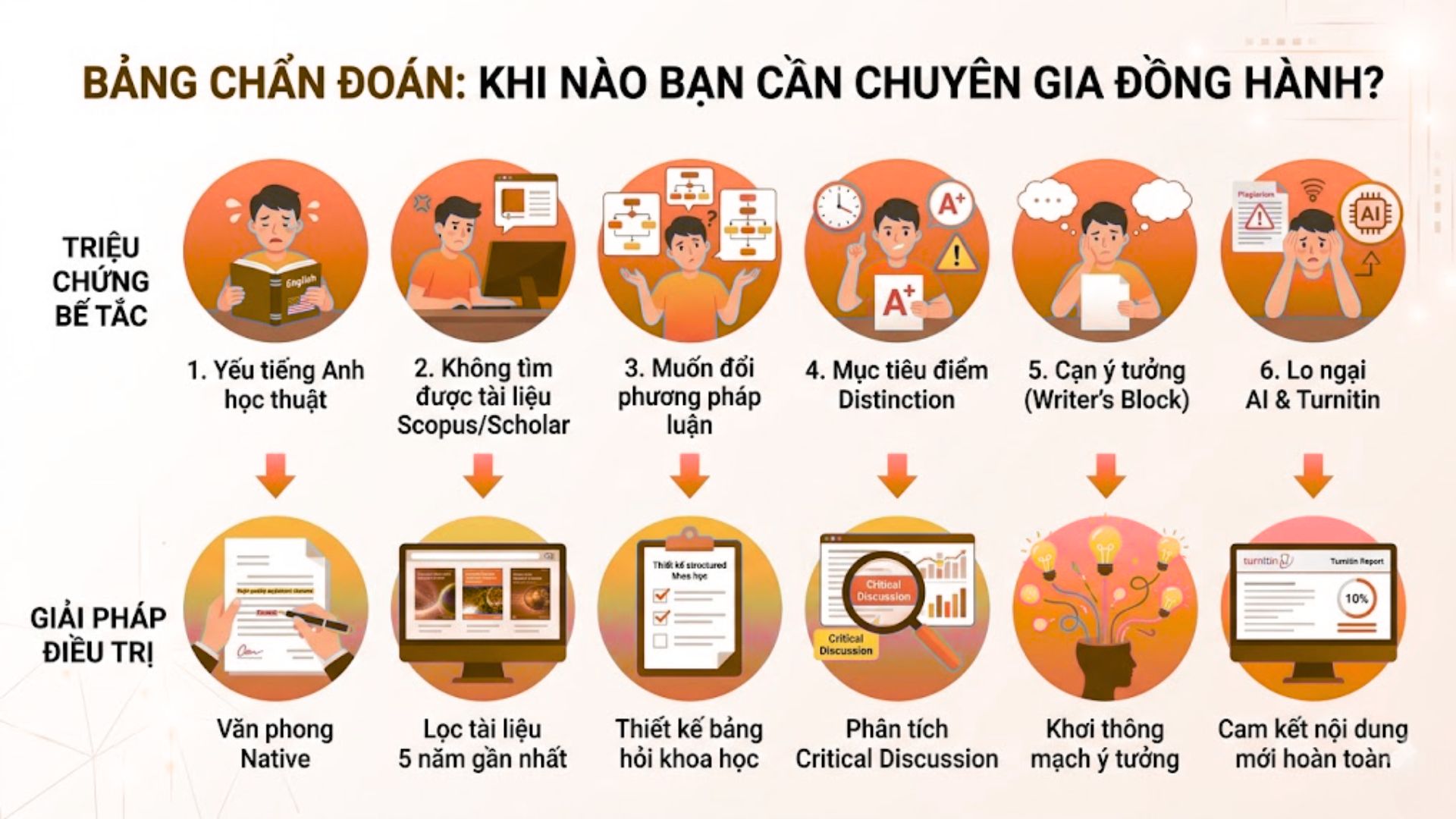 Dưới đây là các tình huống cụ thể mà sinh viên nên tìm kiếm sự đồng hành chuyên môn. Chúng tôi liệt kê 7 kịch bản thực tế phổ biến nhất hiện nay.