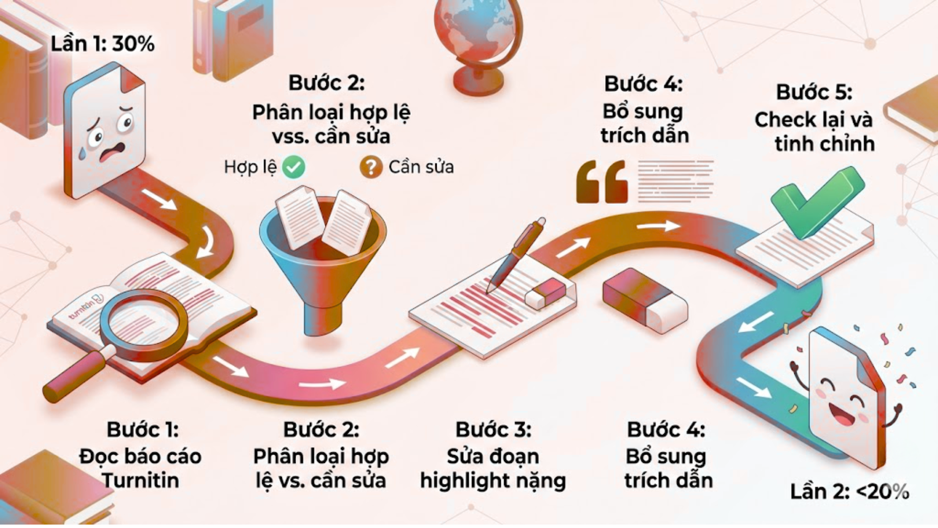 3. Quy trình step-by-step: Giảm Turnitin từ 30% xuống dưới 20% trong 5 bước