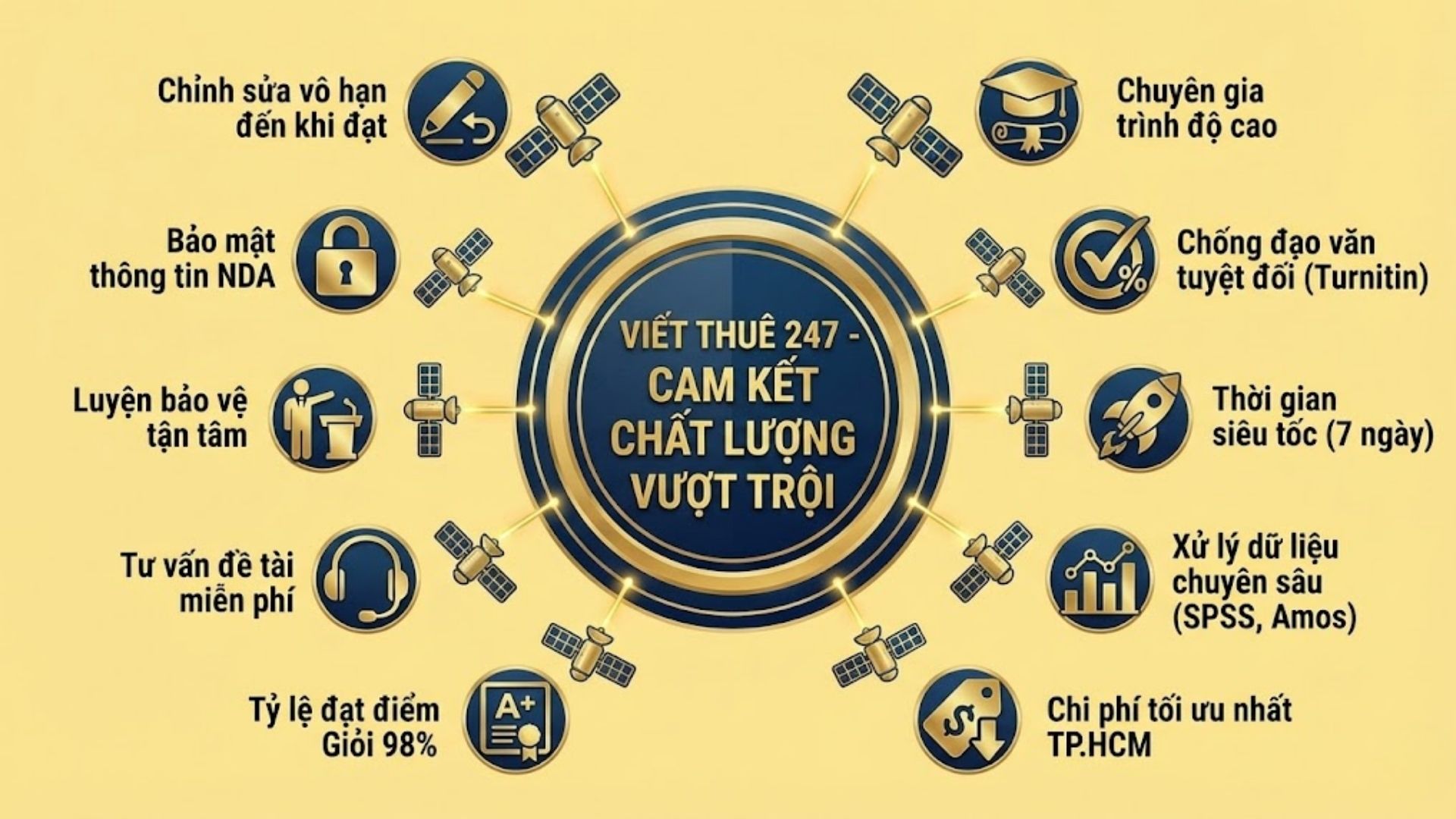 Viết Thuê 247 cam kết đồng hành cùng sinh viên trong mọi giai đoạn, từ tư vấn đề tài đến xử lý số liệu chuyên sâu. Chúng tôi giúp bạn tiết kiệm thời gian và đảm bảo kết quả tốt nghiệp loại Giỏi với quy trình làm việc chuyên nghiệp nhất.