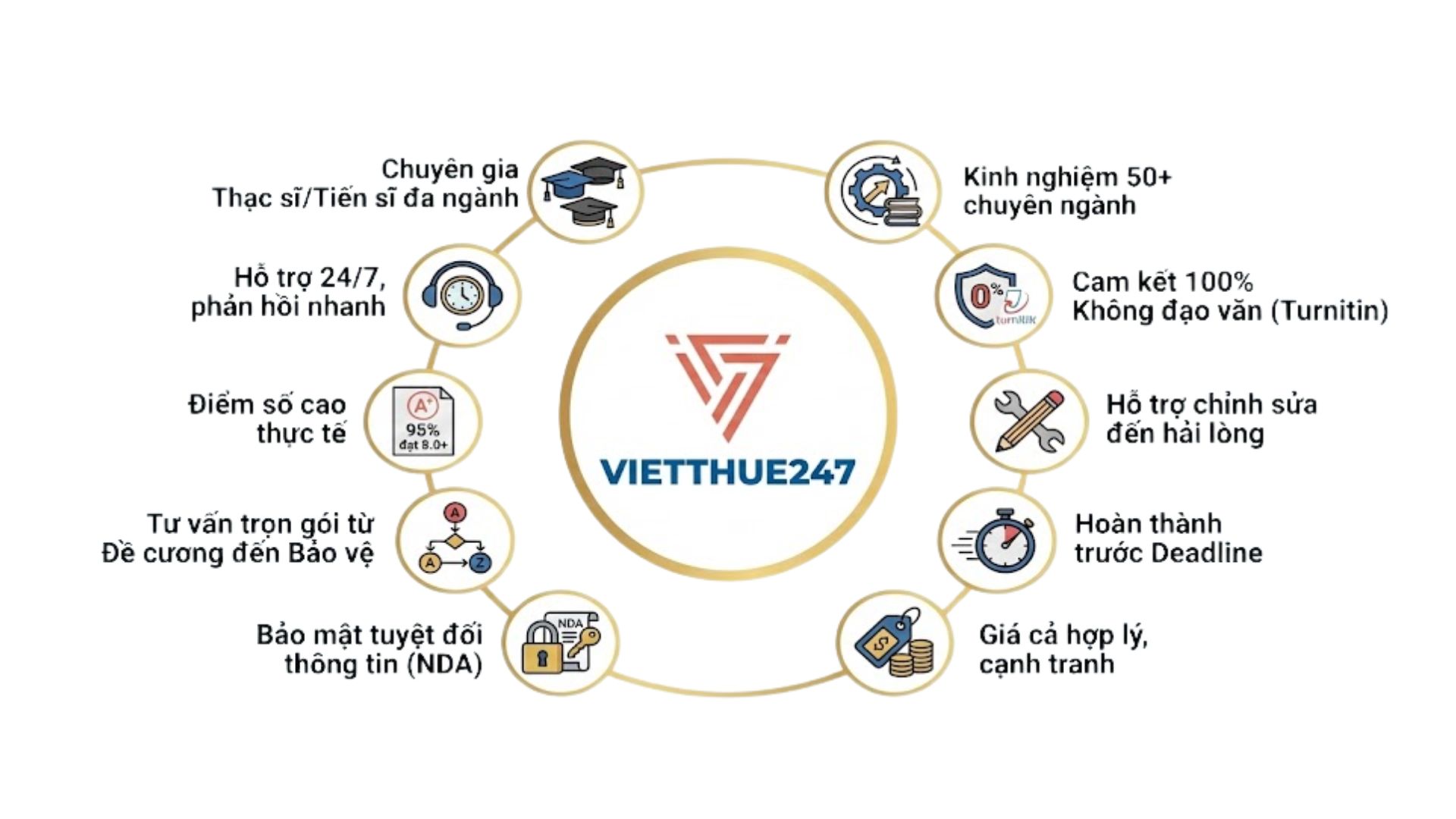 Viết Thuê 247 cam kết chất lượng, uy tín, bảo mật, đáp ứng mọi yêu cầu học thuật từ đề cương đến luận văn thạc sĩ hoàn chỉnh. Liên hệ ngay để nhận tư vấn miễn phí và báo giá chi tiết.