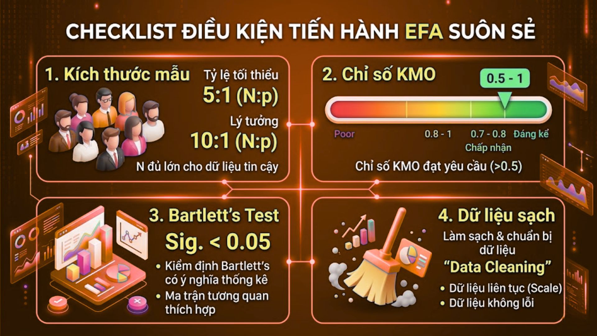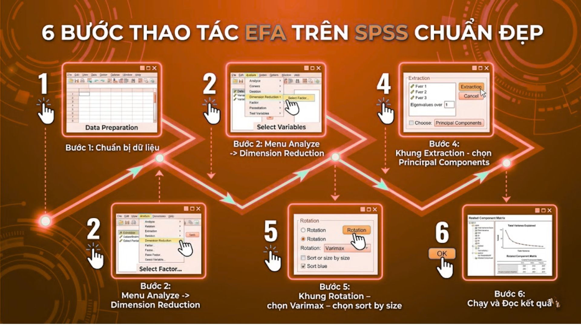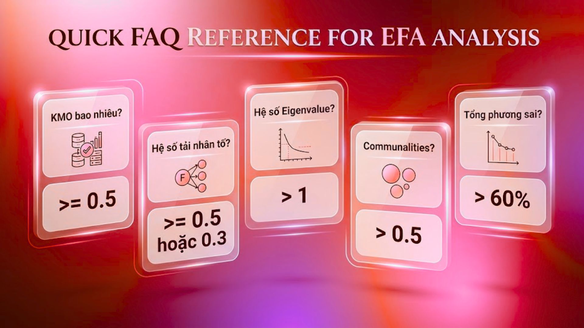 | Nhầm lẫn PCA và EFA | Sai lệch mục tiêu nghiên cứu | Chọn đúng Extraction Method (PAF cho nghiên cứu xã hội) |