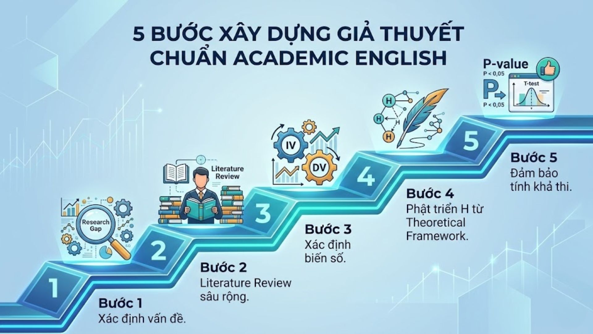 Tóm lược nội dung: Bài viết đã cung cấp cái nhìn toàn diện về cách xây dựng giả thuyết nghiên cứu luận văn tiếng Anh, từ định nghĩa, vai trò đến quy trình 5 bước thực hiện chuyên nghiệp. Chúng tôi đã phân tích sự khác biệt giữa RQ và Hypothesis, các lỗi thường gặp và cung cấp ví dụ thực tế. Nắm vững những kiến thức này giúp bạn tự tin kiến tạo một công trình nghiên cứu khoa học, logic và đạt điểm số ấn tượng.