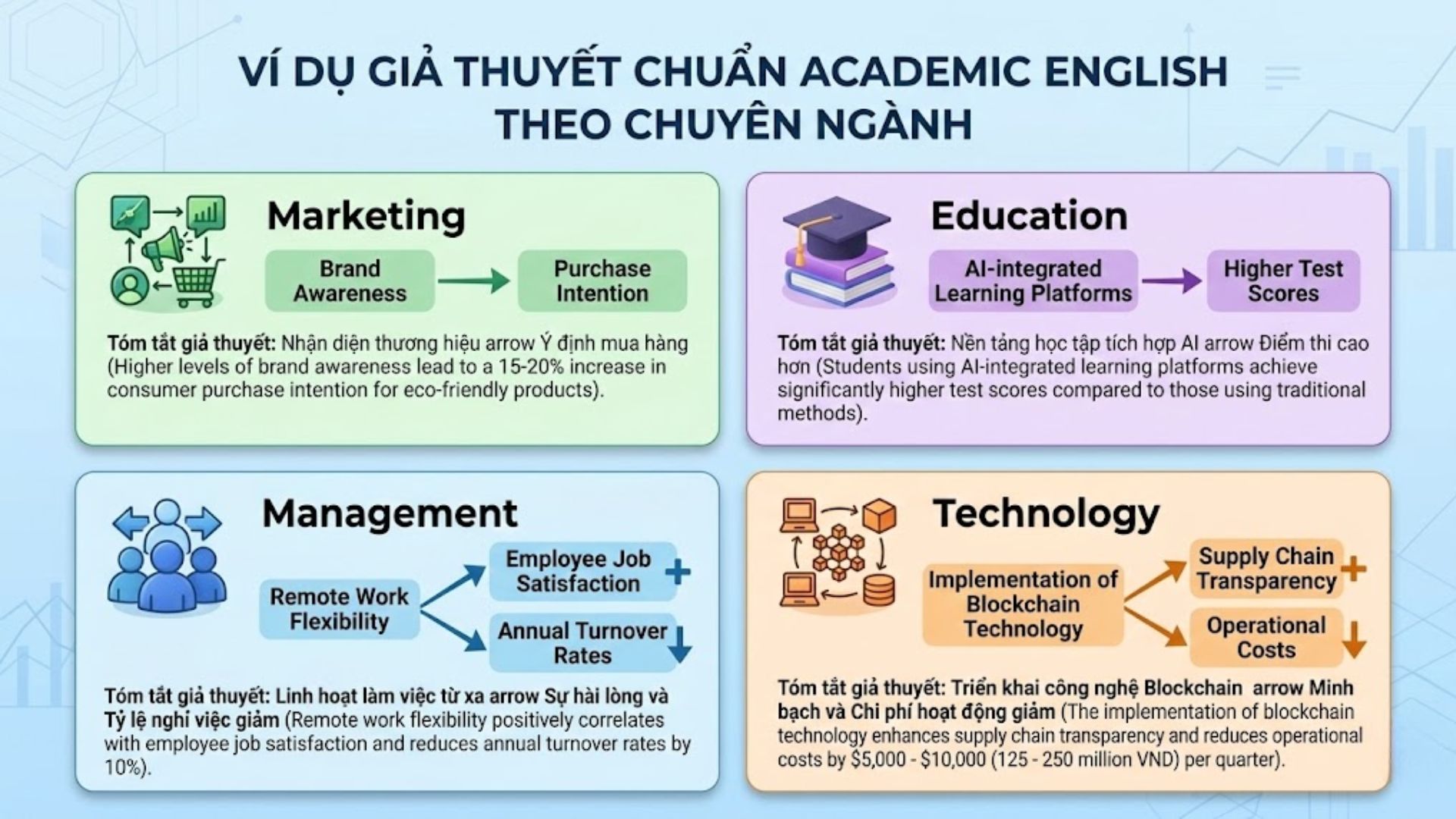 Dưới đây là một số mẫu giả thuyết chuẩn Academic English theo từng chuyên ngành phổ biến:
