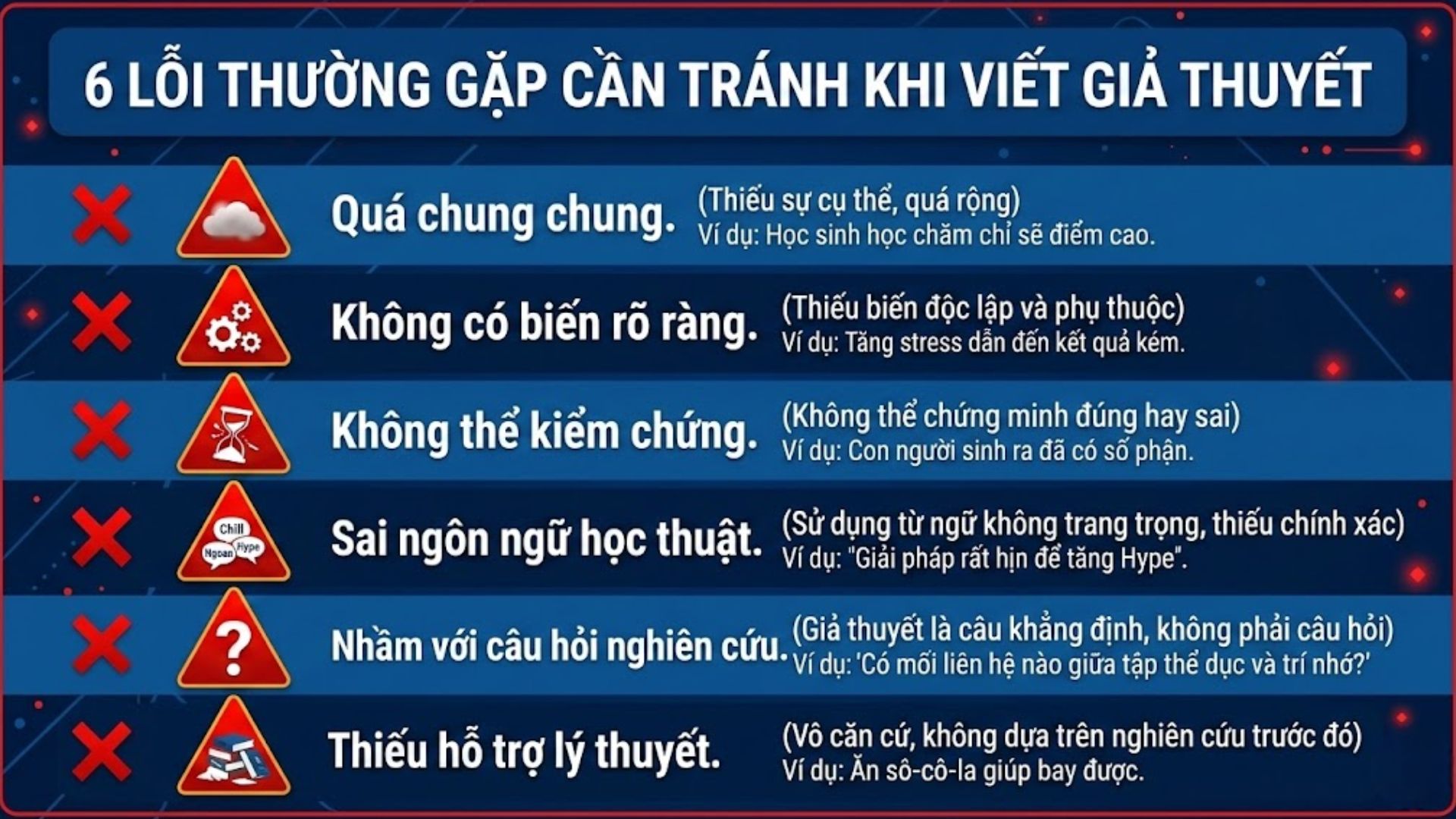 Tránh được các lỗi sai cơ bản sẽ giúp giả thuyết của bạn chuyên nghiệp và thuyết phục hội đồng hơn.